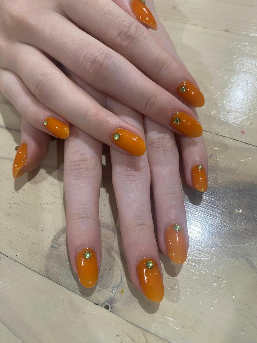 lovely formula and colour - but is actually a sheer/jelly! i used two coats in the attached picture. very much an orange/tangerine colour.