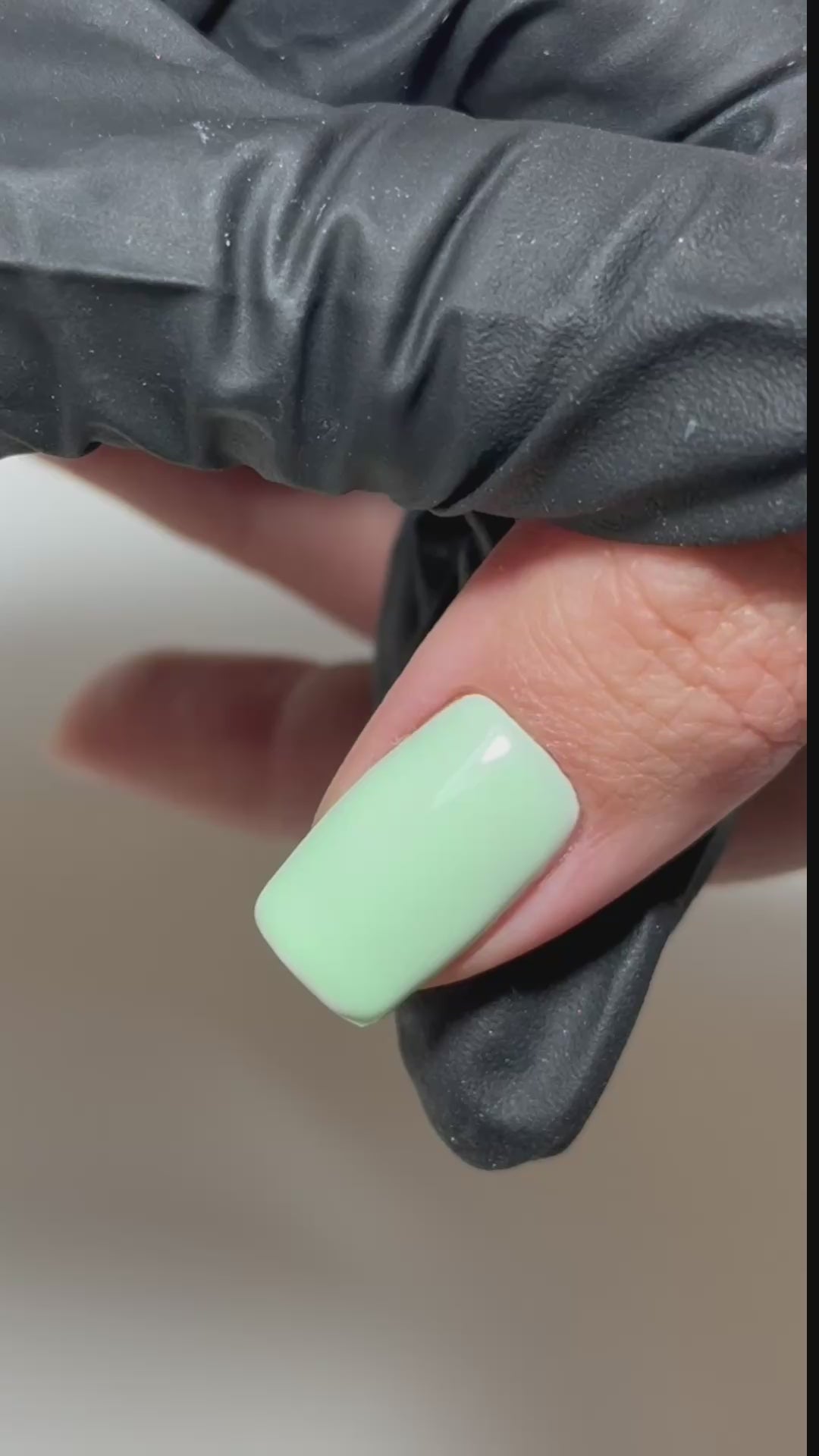 Introducing “Honeydew,” a soft and refreshing pastel green gel polish. This delicate shade is reminiscent of the light, juicy hue of fresh honeydew melon, adding a subtle and serene pop of color to any look.